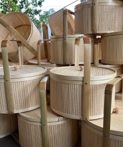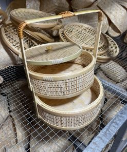 Hôp mành tròn có quai 2 tầng bằng tre – TRE0068