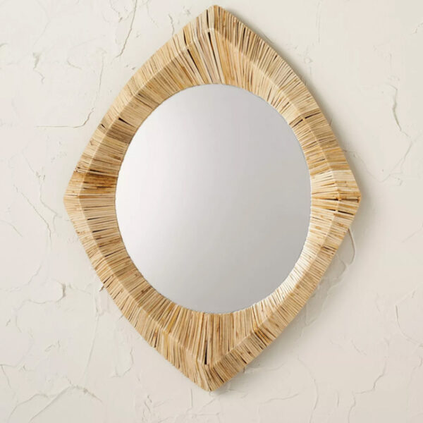 This bohemian-style rattan mirror is a statement piece for any wall.